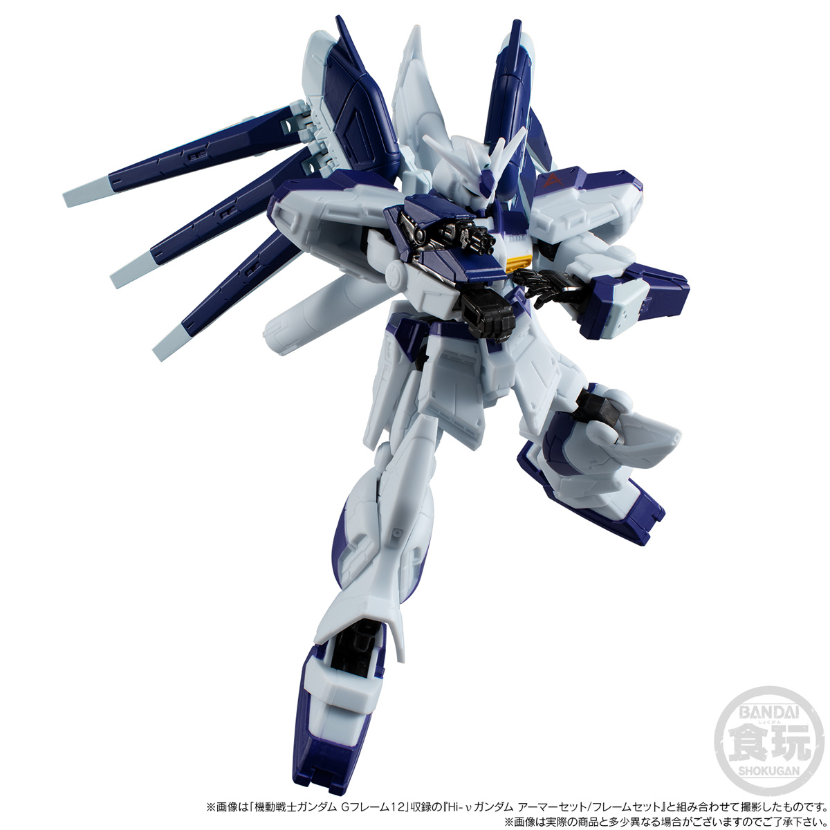 MS(モビルスーツ)が持つフォルムの美しさとポージングの楽しさ、そのどちらも堪能できる食玩「Gフレーム」の第12弾に収録している「Hi-νガンダム」のオプションパーツセットが登場!