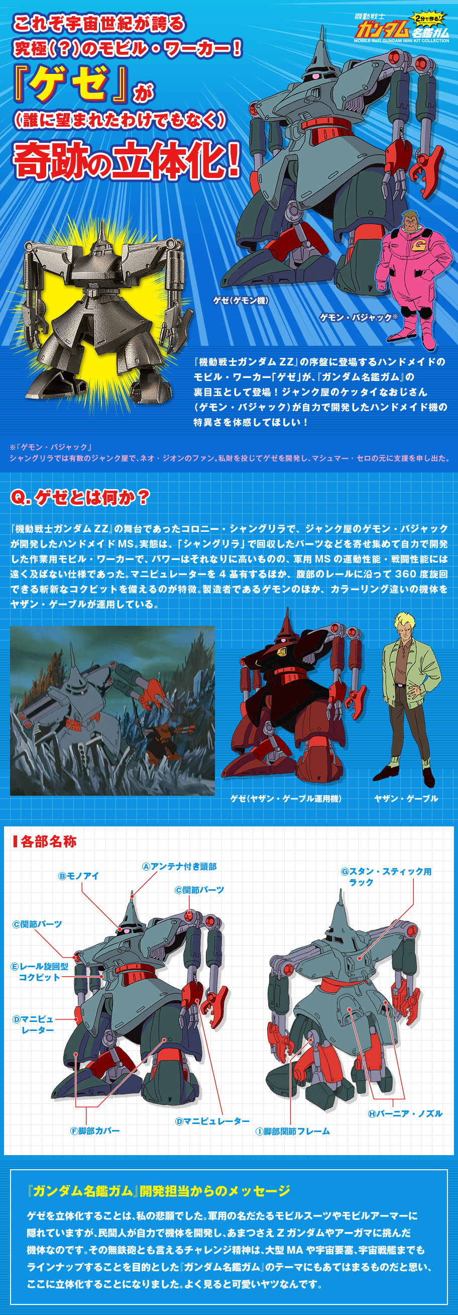 It is a 3D palm-sized plastic toy whose concept entails MS, Battleship and Space Fortress which appear in the "Mobile Suit Gundam series".