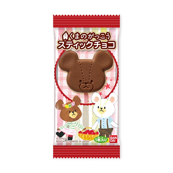 くまのがっこうスティックチョコ お気に入り お気に入り登録とは? 価格 90円(税込:97円) ※この商品は軽減税率8%対象商品です。 発売日 2016年9月6日 発売 売場 全国量販店の菓子売場等 商品アンケート ロングセラー人気絵本「くまのがっこう」の形をした可愛いくておいしいスティックチョコが登場! チョコの種類は、ミルクチョコがメインのジャッキーと、ホワイトチョコがメインのデイビッド2種類です。 チョコの台紙は5種類あり、どれが出るかは食べてからのお楽しみ。 ●スティックチョコ1本(全2種)1.ジャッキー2.デイビッド●スティックチョコ12g (C)BANDAI ※画像には複数ラインナップを組み合わせて撮影したものも含まれます。 ※価格はメーカー希望小売価格表示です。 ※店頭での商品のお取り扱い開始日は、店舗によって異なる場合がございます。 ※画像は実際の商品とは多少異なる場合がございます。 ※掲載情報はページ公開時点のものです。予告なく変更になる場合がございます。