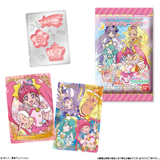 スター☆トゥインクルプリキュア キラキラカードグミ お気に入り お気に入り登録とは? 価格 100円(税込:110円) 発売日 2019年1月28日 発売 売場 全国量販店の菓子売場等 対象年齢 3才以上 商品アンケート 2018年2月放送開始の新番組『スター☆トゥインクルプリキュア』からキラキラカード付きトレーグミが登場です!本商品オリジナルの描き下ろしイラストを使用したコレクションカードと、ピーチ味(無果汁)のトレーグミ(トレー1枚にグミが3個付き)がセットになっています。表面にはメタリック&キラキラ加工を施し、高級感のあるプラ製のカードになっています。 ●カード 1枚(全15種)●グミキャンディ10g (C)ABC-A・東映アニメーション ※画像には複数ラインナップを組み合わせて撮影したものも含まれます。 ※価格はメーカー希望小売価格表示です。 ※店頭での商品のお取り扱い開始日は、店舗によって異なる場合がございます。 ※画像は実際の商品とは多少異なる場合がございます。 ※掲載情報はページ公開時点のものです。予告なく変更になる場合がございます。