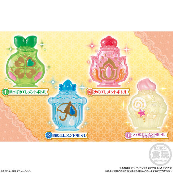 ヒーリングっど プリキュア エレメントボトル3 お気に入り お気に入り登録とは? 価格 380円(税込:418円) 発売日 2020年6月1日 発売 売場 全国量販店の菓子売場等 対象年齢 3才以上 商品アンケート 『ヒーリングっど プリキュア』のDX玩具と一緒に遊べる連動アイテムの第3弾です!エレメントボトルをDX玩具にセットするとそのエレメントボトルに対応した音声がDX玩具から鳴ります。今弾は、食玩オリジナルデザインの「ラテのエレメントボトル(キャンディVer.)」1種を含む、 全4種のラインナップです。 ●エレメントボトル 1個(全4種)1.葉っぱのエレメントボトル2.雨のエレメントボトル3.火のエレメントボトル4.ラテのエレメントボトル(キャンディVer.)●チューインガム1個 (C)ABC-A・東映アニメーション ※画像には複数ラインナップを組み合わせて撮影したものも含まれます。 ※価格はメーカー希望小売価格表示です。 ※店頭での商品のお取り扱い開始日は、店舗によって異なる場合がございます。 ※画像は実際の商品とは多少異なる場合がございます。 ※掲載情報はページ公開時点のものです。予告なく変更になる場合がございます。
