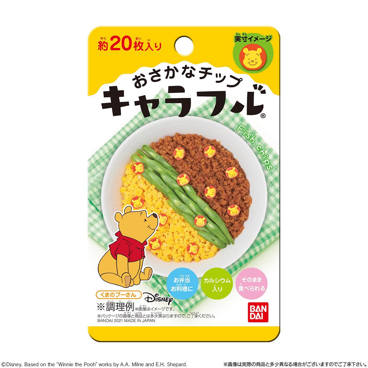 キャラフル くまのプーさん お気に入り お気に入り登録とは? 価格 100円(税込:108円) ※この商品は軽減税率8%対象商品です。 発売日 2021年2月22日 発売 売場 全国量販店ほか、ふりかけコーナー等 ※一部お取り扱いのない店舗がございます。 商品アンケート 「いつものごはんを手軽に、かわいく♪」をコンセプトにした乾燥キャラクターチップの「キャラフル」シリーズです。 おさかなのすり身で出来た乾燥キャラクターチップは、天然系由来の素材を使用した着色料を使用しています。うす味だからいろんなお料理に乗せて楽しめます。 スープ、サラダ、おうどん、お弁当などさまざまなお料理に”フルフル”トッピングするだけで、簡単にかわいいお料理が出来上がります。 ●乾燥魚肉練り製品2.0g(約20枚) (C)Disney. Based on the "Winnie the Pooh" works by A.A. Milne and E.H. Shepard. ※画像には複数ラインナップを組み合わせて撮影したものも含まれます。 ※価格はメーカー希望小売価格表示です。 ※店頭での商品のお取り扱い開始日は、店舗によって異なる場合がございます。 ※画像は実際の商品とは多少異なる場合がございます。 ※掲載情報はページ公開時点のものです。予告なく変更になる場合がございます。