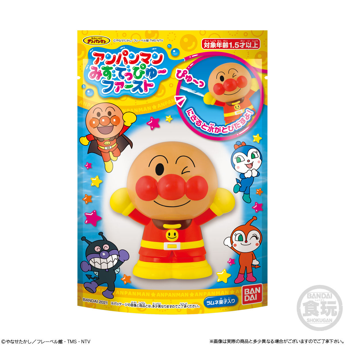 アンパンマンみずでっぴゅ~ファースト お気に入り お気に入り登録とは? 価格 250円(税込:275円) 発売日 2021年7月26日 発売 売場 全国量販店の菓子売場等 対象年齢 1.5才以上 商品アンケート 大人気のソフビみずでっぽう「みずでっぴゅ~」が登場!小さいお子様でも安心して遊べる仕様です♪ 押すとぴゅー!っと水が出るやわらか水鉄砲です。 にぎりやすい柔らかさ、厚みに設定しているので、小さなお子様から楽しめます!人気の「アンパンマン」「ばいきんまん」「ドキンちゃん」「コキンちゃん」をラインナップ。 みずあそびやお風呂あそびもアンパンマンたちといっしょ♪ ●彩色済みソフビ人形(全4種)1.アンパンマン2.ばいきんまん3.ドキンちゃん4.コキンちゃん●ラムネ菓子3g (C)やなせたかし/フレーベル館・TMS・NTV ※画像には複数ラインナップを組み合わせて撮影したものも含まれます。 ※価格はメーカー希望小売価格表示です。 ※店頭での商品のお取り扱い開始日は、店舗によって異なる場合がございます。 ※画像は実際の商品とは多少異なる場合がございます。 ※掲載情報はページ公開時点のものです。予告なく変更になる場合がございます。