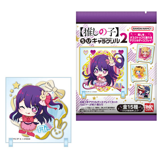 【推しの子】ウエハース2 お気に入り お気に入り登録とは? 価格 150円(税込:165円) 発売日 2024年9月30日 発売 売場 全国量販店の菓子売場等 対象年齢 15才以上 購入はこちら 商品アンケート TVアニメ『【推しの子】』のカード付ウエハースの第2弾登場!カードはメタリックプラカードで新規描き下ろしを含む全29種。スペシャルカードは豪華ホロ箔押し仕様です。 ●メタリックプラカード1枚(全29種)1.スペシャルカード9種2.ビジュアルカード13種3.EDカード5種4.ストーリーカード2種●キャラメルクリーム味ウエハース1枚 (C)赤坂アカ×横槍メンゴ/集英社・【推しの子】製作委員会 ※画像には複数ラインナップを組み合わせて撮影したものも含まれます。 ※価格はメーカー希望小売価格表示です。 ※店頭での商品のお取り扱い開始日は、店舗によって異なる場合がございます。 ※画像は実際の商品とは多少異なる場合がございます。 ※掲載情報はページ公開時点のものです。予告なく変更になる場合がございます。