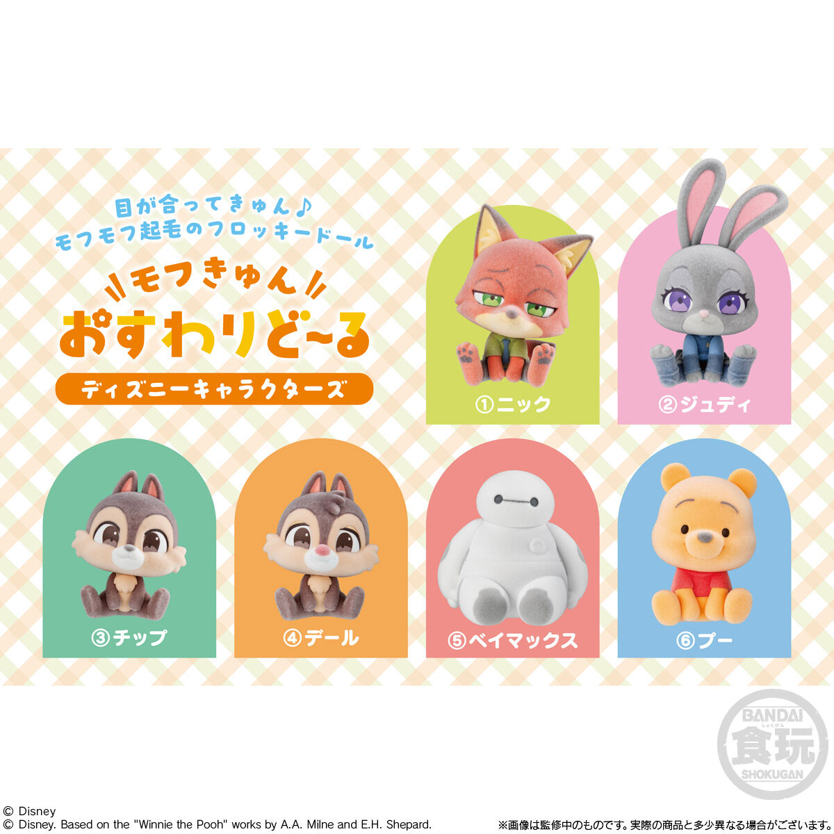 モフきゅんおすわりどーる ディズニーキャラクターズ お気に入り お気に入り登録とは? 価格 500円(税込:550円) 発売日 2025年12月15日 発売 売場 全国量販店の菓子売場等 対象年齢 15才以上 商品アンケート 目が合って”キュン“とするような、ぺたんと座って見つめてくる姿が可愛いフィギュア。もふもふ起毛で温もりのあるフロッキー加工で仕上げました。ラインナップは全6種。お好きなキャラクターを選んで購入いただけます。 ●フロッキードール1個(全6種)1.ニック2.ジュディ3.チップ4.デール5.ベイマックス6.プー●ラムネ菓子1個 (C) Disney(C) Disney. Based on the "Winnie the Pooh" works by A.A. Milne and E.H. Shepard. ※画像には複数ラインナップを組み合わせて撮影したものも含まれます。 ※価格はメーカー希望小売価格表示です。 ※店頭での商品のお取り扱い開始日は、店舗によって異なる場合がございます。 ※画像は実際の商品とは多少異なる場合がございます。 ※掲載情報はページ公開時点のものです。予告なく変更になる場合がございます。