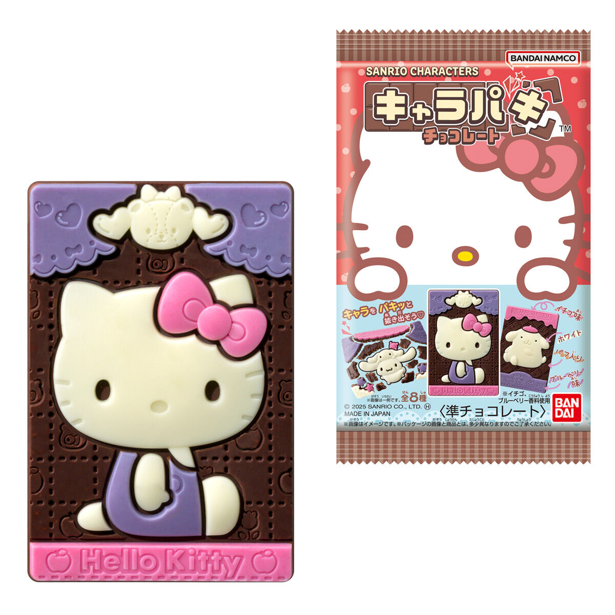 サンリオキャラクターズ キャラパキ チョコレート(2025年5月リニューアル) お気に入り お気に入り登録とは? 価格 128円(税込:138円) ※この商品は軽減税率8%対象商品です。 発売日 2025年5月19日 発売 売場 全国量販店の菓子売場等 商品アンケート 「サンリオキャラクターズ キャラパキ」のパッケージがリニューアル!!カラーリング(4色4味)とチョコレートの造形でキャラクターの魅力を引き出す、本商品オリジナル仕様のチョコレート菓子です。パッケージにはポチャッコが登場!6キャラそれぞれの目がハートデザインも新登場で全20種!チョコラインナップは全8種類です!チョコレートは誰に出会えるかは開けてからのお楽しみ…♪ ●準チョコレート 1個(全8種)1.ハローキティ2.シナモロール3.マイメロディ4.クロミ5.ポチャッコ6.ポムポムプリン7.タキシードサム8.ハンギョドン (C)2025 SANRIO CO., LTD. APPROVAL NO. L660719 ※画像には複数ラインナップを組み合わせて撮影したものも含まれます。 ※価格はメーカー希望小売価格表示です。 ※店頭での商品のお取り扱い開始日は、店舗によって異なる場合がございます。 ※画像は実際の商品とは多少異なる場合がございます。 ※掲載情報はページ公開時点のものです。予告なく変更になる場合がございます。