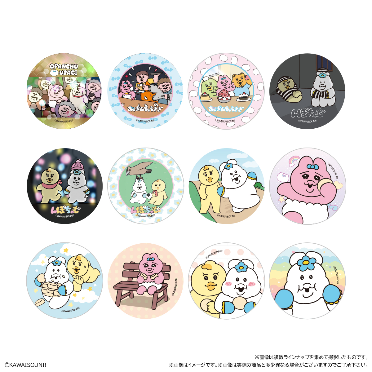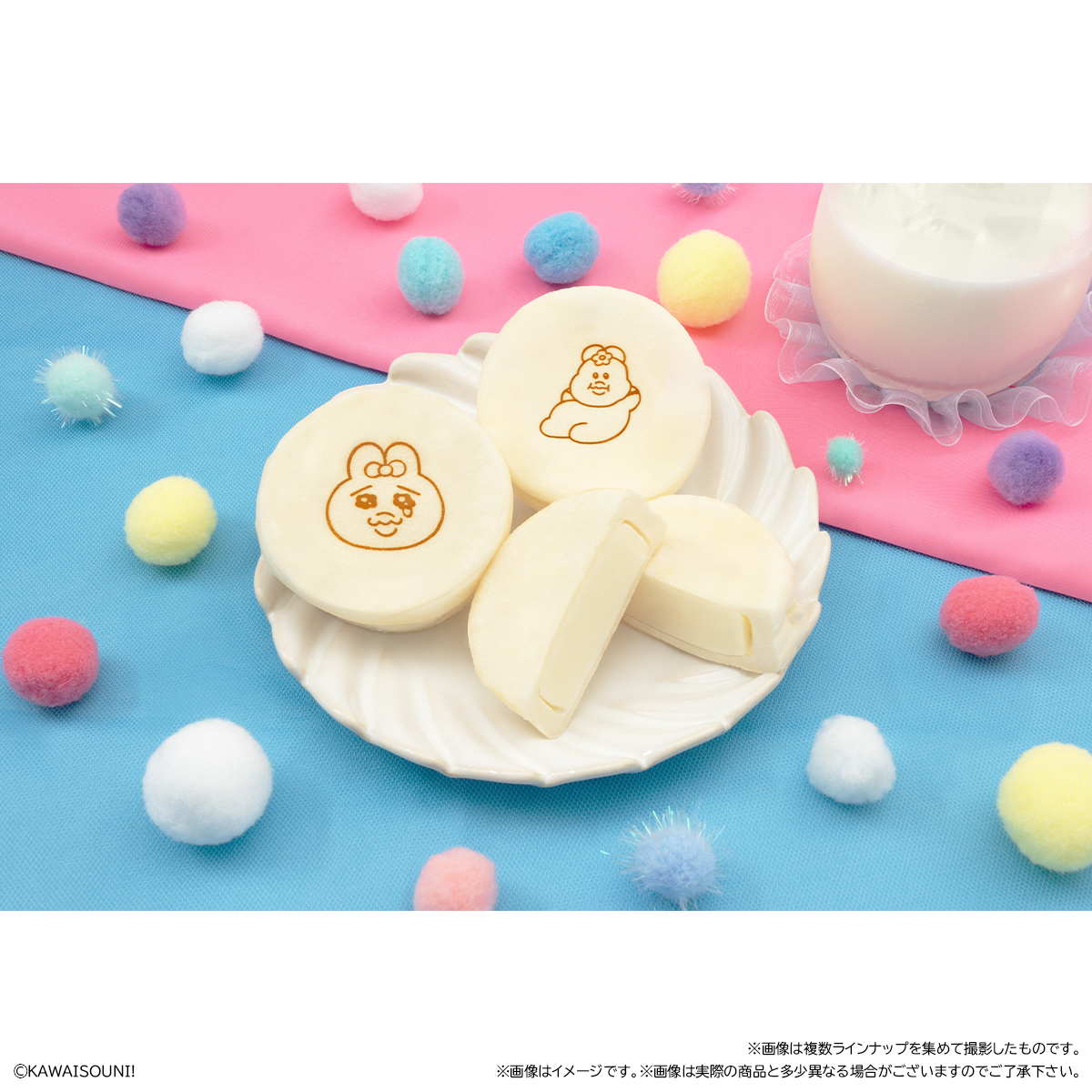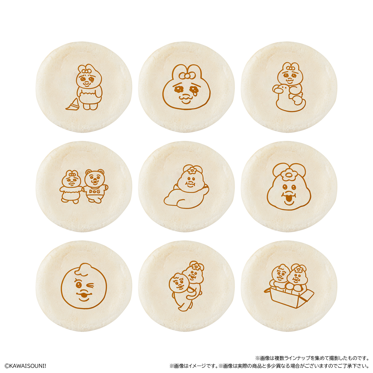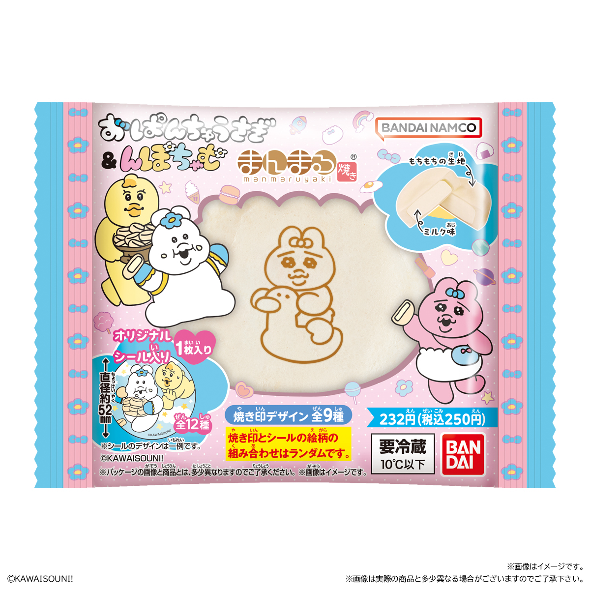 おぱんちゅうさぎ&んぽちゃむ まんまる焼き お気に入り お気に入り登録とは? 価格 232円(税込:250円) ※この商品は軽減税率8%対象商品です。 発売日 2025年11月25日 発売 売場 全国のファミリーマート(一部店舗を除く)のチルドスイーツコーナー 対象年齢 3才以上 商品アンケート 「おぱんちゅうさぎ」と「んぽちゃむ」のまんまる焼きが登場! まんまる生地の今川焼きに焼き印(全9種)が押されており、中にはミルク味のクリームが入っているスイーツです。 付属のシールは全12種の中からランダムで1枚が入っています。 ファミリーマート限定発売です。 ●和生菓子1個 ●シール1枚入り(全12種) (C)KAWAISOUNI! ※画像には複数ラインナップを組み合わせて撮影したものも含まれます。 ※価格はメーカー希望小売価格表示です。 ※店頭での商品のお取り扱い開始日は、店舗によって異なる場合がございます。 ※画像は実際の商品とは多少異なる場合がございます。 ※掲載情報はページ公開時点のものです。予告なく変更になる場合がございます。 ※開封後は消費期限にかかわらず、お早めに召し上がってください。 ※生地の黒い斑点は焦げです。品質に問題はございません。 ※クリームが生地の表面についていることがありますが、品質に問題はございません。 ※召し上がり方 冷蔵庫で冷やして、そのまま召し上がってください。
