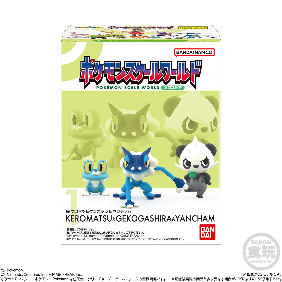 ポケモンスケールワールド カロス地方 お気に入り お気に入り登録とは? 価格 680円(税込:748円) 発売日 2025年12月22日 発売 売場 全国量販店の菓子売場等 対象年齢 15才以上 商品アンケート 「ポケモンスケールワールド」とは“人間とポケモンが共存する世界”の再現をコンセプトにした、20分の1スケールで立体表現するフィギュアシリーズ。ポケモンのフィギュアを指先でつまむ小さいサイズから両手いっぱいの大きなサイズまで幅広いボリューム感で揃えることができます。 今弾は『ポケットモンスター X・Y』の舞台であるカロス地方です。女の子主人公・セレナに加え、最初の3匹とその進化形をはじめとしたカロス地方のポケモンたちが登場!ポケモン10種、ポケモントレーナー1種の全11種類。 ●彩色済みフィギュア(全6種)1.ケロマツ&ゲコガシラ&ヤンチャム2.フォッコ&テールナー3.ハリマロン&ハリボーグ4.ニンフィア&デデンネ5.ゲッコウガ6.セレナ●ガム(ソーダ味)1個 (C)Pokémon.(C)Nintendo/Creatures Inc./GAME FREAK inc.ポケットモンスター・ポケモン・Pokémonは任天堂・クリーチャーズ・ゲームフリークの登録商標です。 ※画像には複数ラインナップを組み合わせて撮影したものも含まれます。 ※価格はメーカー希望小売価格表示です。 ※店頭での商品のお取り扱い開始日は、店舗によって異なる場合がございます。 ※画像は実際の商品とは多少異なる場合がございます。 ※掲載情報はページ公開時点のものです。予告なく変更になる場合がございます。