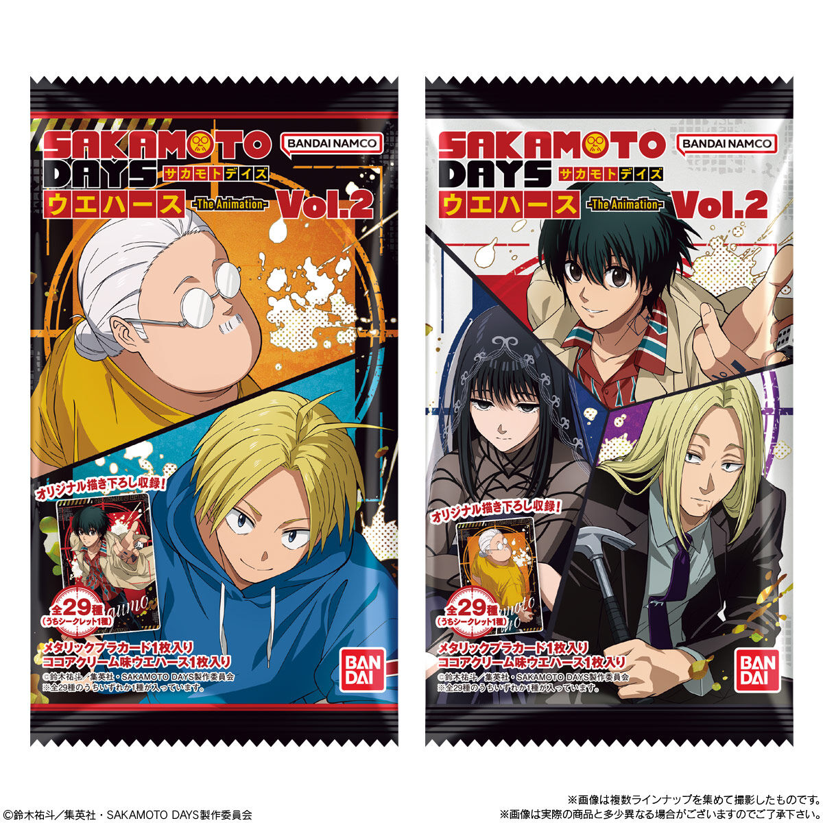 SAKAMOTO DAYSウエハース-The Animation- vol.2 お気に入り お気に入り登録とは? 価格 155円(税込:171円) 発売日 2025年10月6日 発売 売場 全国量販店の菓子売場等 対象年齢 15才以上 購入はこちら 商品アンケート アニメ『SAKAMOTO DAYS』からカードウエハース第2弾が登場!カードは全29種。スペシャルレアカードには、食玩限定描き下ろしイラストを使用した、豪華ホロ箔押しカードを8種収録!レアカードは一部、2024年11月にプライズで商品化した描き下ろしイラストを収録しております。ウエハースはココアクリーム味です。 ●メタリックプラカード1種(全29種/うちシークレット1種)●ココアクリーム味ウエハース1枚 (C)鈴木祐斗/集英社・SAKAMOTO DAYS製作委員会 ※画像には複数ラインナップを組み合わせて撮影したものも含まれます。 ※価格はメーカー希望小売価格表示です。 ※店頭での商品のお取り扱い開始日は、店舗によって異なる場合がございます。 ※画像は実際の商品とは多少異なる場合がございます。 ※掲載情報はページ公開時点のものです。予告なく変更になる場合がございます。