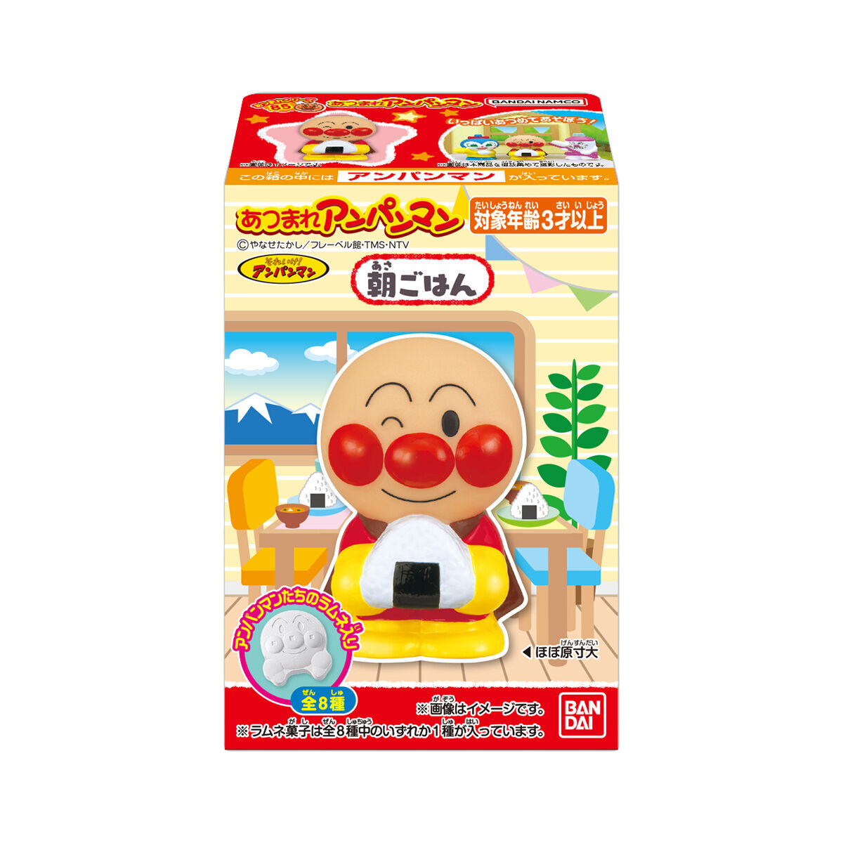 あつまれアンパンマンP85 お気に入り お気に入り登録とは? 価格 200円(税込:220円) 発売日 2025年10月6日 発売 売場 全国量販店の菓子売場等 対象年齢 3才以上 商品アンケート 『あつまれアンパンマン』シリーズ第85弾は朝ごはんや歯みがきなど、「日常」がテーマ。読書をするドキンちゃんや、お風呂に入るめいけんチーズなど、元気いっぱいななかまたちが全9種♪ ●彩色済みソフビ人形1個(全9種)1.アンパンマン2.コキンちゃん3.はみがきまん4.ドキンちゃん5.しょくぱんまん6.カバお7.カレーパンマン8.めいけんチーズ9.ばいきんまん●ラムネ菓子1個 (C)やなせたかし/フレーベル館・TMS・NTV ※画像には複数ラインナップを組み合わせて撮影したものも含まれます。 ※価格はメーカー希望小売価格表示です。 ※店頭での商品のお取り扱い開始日は、店舗によって異なる場合がございます。 ※画像は実際の商品とは多少異なる場合がございます。 ※掲載情報はページ公開時点のものです。予告なく変更になる場合がございます。