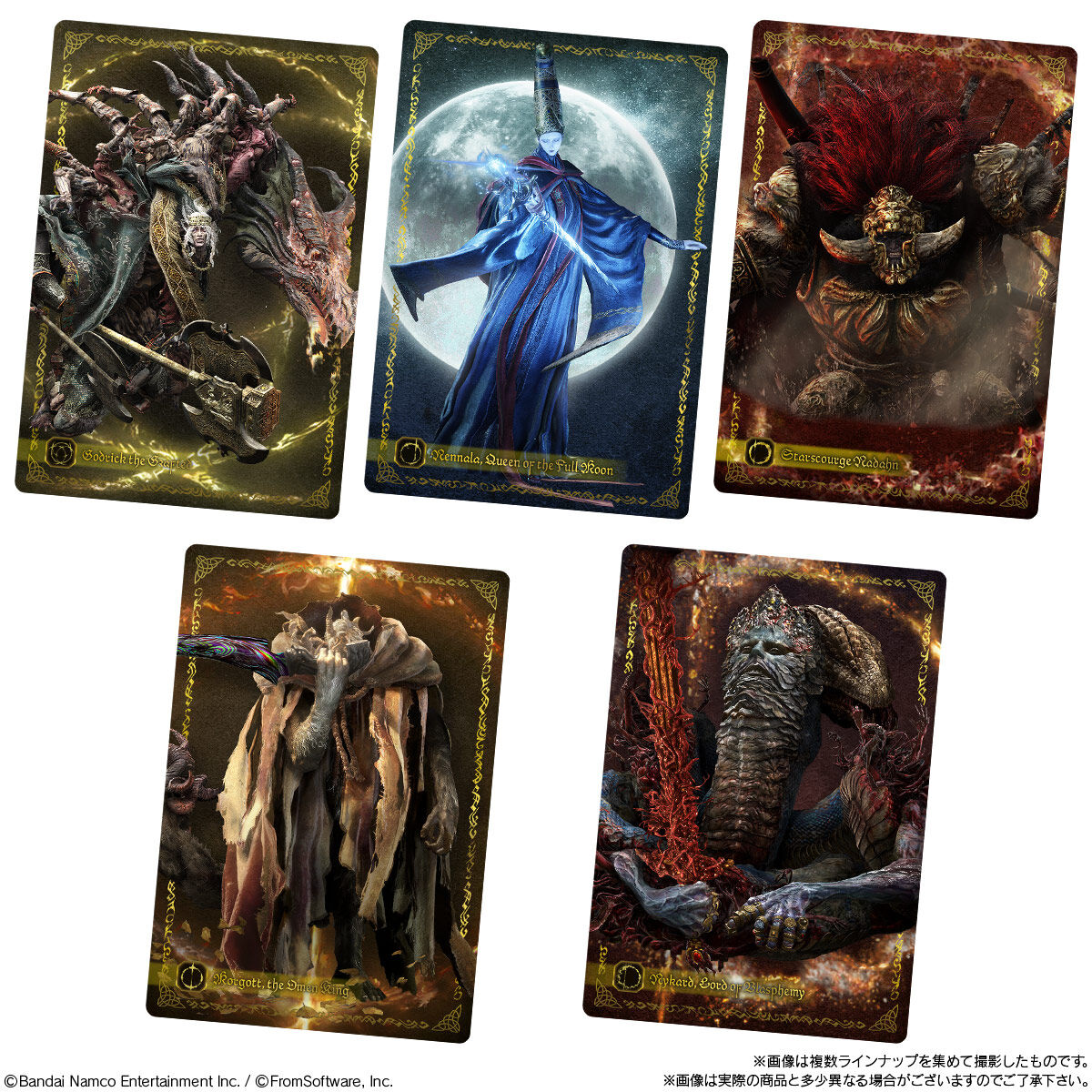 エルデンリング ツインウエハース お気に入り お気に入り登録とは? 価格 200円(税込:220円) 発売日 2025年10月13日 発売 売場 全国量販店の菓子売場等 対象年齢 15才以上 購入はこちら 商品アンケート 『ELDEN RING』と『ELDEN RING NIGHTREIGN』のキャラクターや世界観が、手元で楽しめる美麗カード付ツインウエハースとなって登場。全種メタリックプラカードで高級感のあるカードとなっています。一部のキャラクターカードは金色箔押しで豪華な仕様となっています。 ●メタリックプラカード1枚(全26種)●バニラクリーム味ウエハース2枚 (C)Bandai Namco Entertainment Inc. / (C)FromSoftware, Inc. ※画像には複数ラインナップを組み合わせて撮影したものも含まれます。 ※価格はメーカー希望小売価格表示です。 ※店頭での商品のお取り扱い開始日は、店舗によって異なる場合がございます。 ※画像は実際の商品とは多少異なる場合がございます。 ※掲載情報はページ公開時点のものです。予告なく変更になる場合がございます。