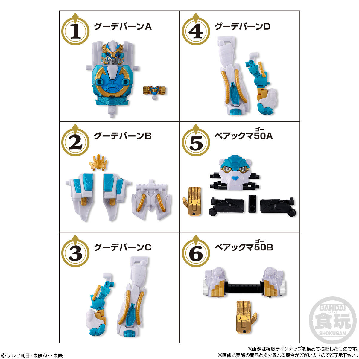 ミニプラ ナンバーワン合体シリーズ04 グーデバーン&ベアックマ50 お気に入り お気に入り登録とは? 価格 650円(税込:715円) 発売日 2025年10月27日 発売 売場 全国量販店の菓子売場等 対象年齢 3才以上 商品アンケート 『ナンバーワン戦隊ゴジュウジャー』より、工具不要で簡単な組み立てキット「ミニプラ」が登場!1~4で「グーデバーン」が完成し、5~6で「ベアックマ50」が完成します。そして完成したグーデバーンとベアックマ50が合体することで「グーデバーン ベアックマ50」が完成!さらにグーデバーン、1弾(4月発売済み)・2弾(6月発売済み)にそれぞれラインナップされている「テガソード」と組み合わせることが可能。合体させることで「テガソードホワイトバーン」が完成します!プロポーション、可動、そして色分けにもこだわったミニプラシリーズをお楽しみください。 ●プラスチックモデル一式(全6種)1.グーデバーンA2.グーデバーンB3.グーデバーンC4.グーデバーンD5.ベアックマ50A6.ベアックマ50B●ラムネ菓子1個 (C)テレビ朝日・東映AG・東映 ※画像には複数ラインナップを組み合わせて撮影したものも含まれます。 ※価格はメーカー希望小売価格表示です。 ※店頭での商品のお取り扱い開始日は、店舗によって異なる場合がございます。 ※画像は実際の商品とは多少異なる場合がございます。 ※掲載情報はページ公開時点のものです。予告なく変更になる場合がございます。