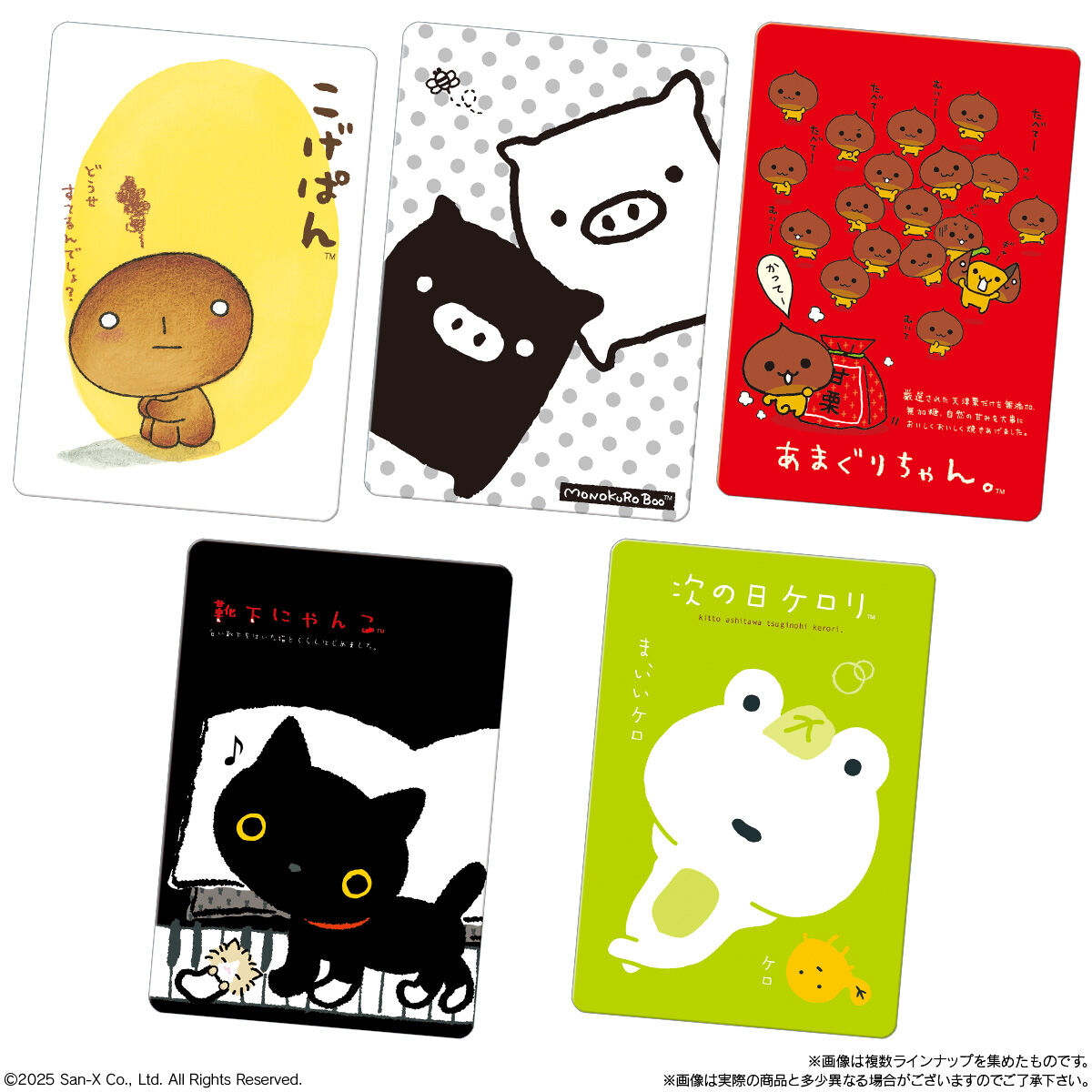 サンエックスユニバース カードウエハース お気に入り お気に入り登録とは? 価格 155円(税込:171円) 発売日 2025年10月6日 発売 売場 全国量販店の菓子売場等 対象年齢 3才以上 購入はこちら 商品アンケート サンエックスユニバースより、カード付きウエハースが登場!リラックマ、すみっコぐらしなどの人気キャラクターやたれぱんだ、アフロ犬など長く愛されるキャラクターまで全25種のラインナップ! ●カード1枚(全25種)●バニラクリーム味ウエハース1枚 (C)2025 San-X Co., Ltd. All Rights Reserved. ※画像には複数ラインナップを組み合わせて撮影したものも含まれます。 ※価格はメーカー希望小売価格表示です。 ※店頭での商品のお取り扱い開始日は、店舗によって異なる場合がございます。 ※画像は実際の商品とは多少異なる場合がございます。 ※掲載情報はページ公開時点のものです。予告なく変更になる場合がございます。