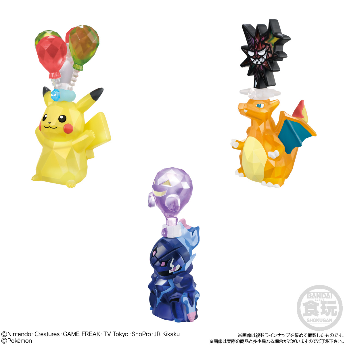 テラスタルポケモンキッズ お気に入り お気に入り登録とは? 価格 420円(税込:462円) 発売日 2026年6月 発売 売場 全国量販店の菓子売場等 対象年齢 3才以上 商品アンケート ポケモンたちが宝石のようにキラキラと光り輝く、パルデア地方特有の現象「テラスタル」。 頭部に王冠のようなテラスタルジュエルを、体表はカットした宝石のような造形を再現し、クリア素材できらめきを再現しました。 ラインナップは全6種。 ポケモンキッズの仲間たちと一緒に冒険の世界に旅立とう! ●彩色済みソフビ人形(全6種) 1.ひこうテラスタルピカチュウ 2.あくテラスタルリザードン 3.ゴーストテラスタルソウブレイズ 4.くさテラスタルマスカーニャ 5.ほのおテラスタルラウドボーン 6.みずテラスタルウェーニバル ●ガム(ソーダ味)1個 (C)Nintendo・Creatures・GAME FREAK・TV Tokyo・ShoPro・JR Kikaku(C)Pokémon ※画像には複数ラインナップを組み合わせて撮影したものも含まれます。 ※価格はメーカー希望小売価格表示です。 ※店頭での商品のお取り扱い開始日は、店舗によって異なる場合がございます。 ※画像は実際の商品とは多少異なる場合がございます。 ※掲載情報はページ公開時点のものです。予告なく変更になる場合がございます。