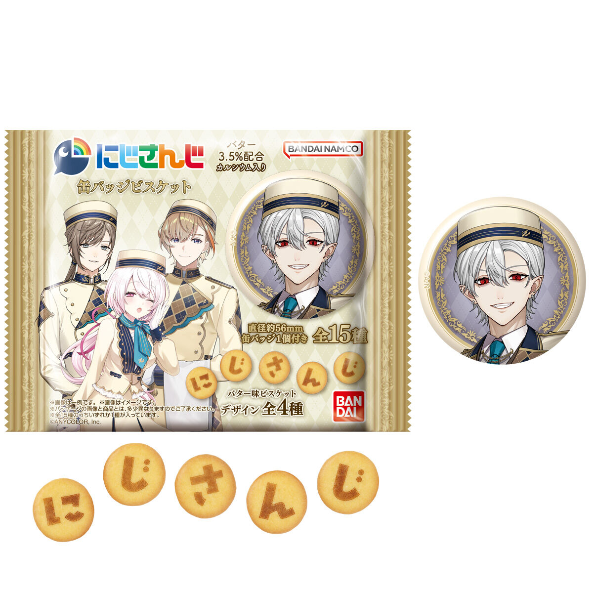 にじさんじ 缶バッジビスケット お気に入り お気に入り登録とは? 価格 350円(税込:385円) 発売日 2026年4月13日 発売 売場 全国量販店の菓子売場等 対象年齢 15才以上 購入はこちら 商品アンケート 「にじさんじ」の缶バッジビスケットが登場!缶バッジは食玩オリジナルのコンシェルジュ衣装ビジュアルを使用した全15種のラインナップです。缶バッジのサイズは、直径約56mmです。※缶バッジは全15種の中からランダムで1個が入っています。※ビスケットのデザインはランダムで封入されます。 ●缶バッジ1個(全15種)・叶・葛葉・笹木咲・椎名唯華・四季凪アキラ・ジョー・力一・周央サンゴ・セラフ・ダズルガーデン・葉加瀬冬雪・壱百満天原サロメ・風楽奏斗・本間ひまわり・魔界ノりりむ・夜見れな・渡会雲雀●ビスケット21g (C)ANYCOLOR, Inc. ※画像には複数ラインナップを組み合わせて撮影したものも含まれます。 ※価格はメーカー希望小売価格表示です。 ※店頭での商品のお取り扱い開始日は、店舗によって異なる場合がございます。 ※画像は実際の商品とは多少異なる場合がございます。 ※掲載情報はページ公開時点のものです。予告なく変更になる場合がございます。
