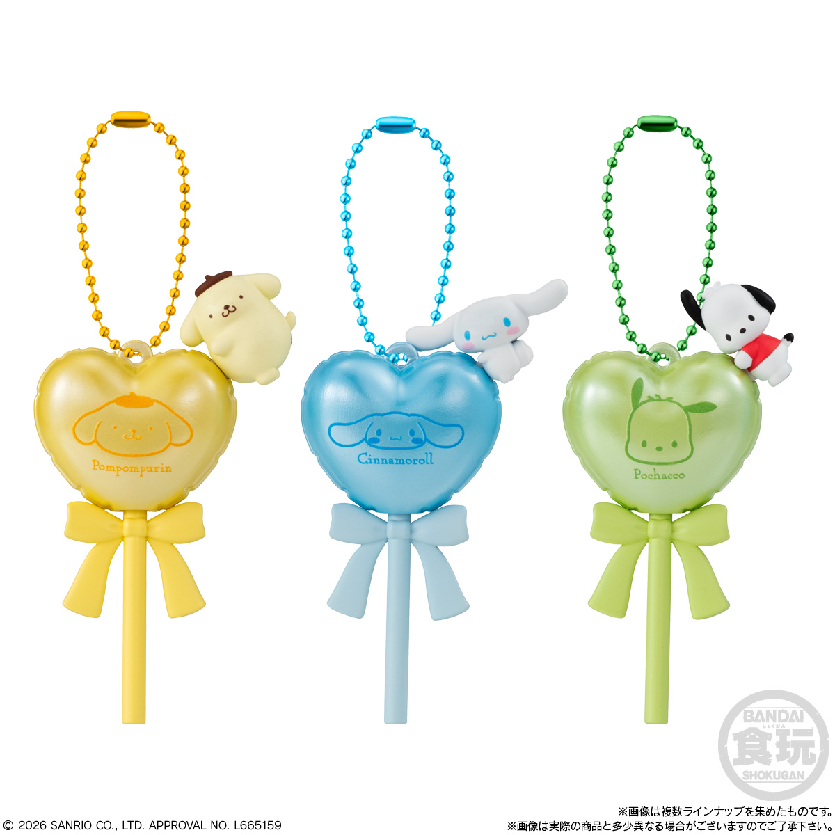 サンリオキャラクターズ バルーンポップチャーム&グミ お気に入り お気に入り登録とは? 価格 360円(税込:396円) 発売日 2026年8月 発売 売場 全国量販店の菓子売場等 対象年齢 15才以上 購入はこちら 商品アンケート サンリオキャラクターズのスティックバルーン風チャームが、グミ付きでお菓子売り場に登場!ラインナップはカラフルな全8種。 スティックは自分で組み立てる仕様で、お菓子のおまけとは思えないビッグサイズに仕上がります。 振るとシャカシャカ音が鳴る、楽しいギミック付き♪推し活にもぴったりなカラフルなバルーンスティックで、推し色を身に着けよう!グミの形も全8種。味はりんご味です。 ●バルーン風チャーム 1個(全8種) 1.ハローキティ 2.マイメロディ 3.クロミ 4.ポムポムプリン 5.シナモロール 6.ポチャッコ 7.バッドばつ丸 8.ハンギョドン●グミキャンディ27g (C) 2026 SANRIO CO., LTD. APPROVAL NO. L665159 ※画像には複数ラインナップを組み合わせて撮影したものも含まれます。 ※価格はメーカー希望小売価格表示です。 ※店頭での商品のお取り扱い開始日は、店舗によって異なる場合がございます。 ※画像は実際の商品とは多少異なる場合がございます。 ※掲載情報はページ公開時点のものです。予告なく変更になる場合がございます。