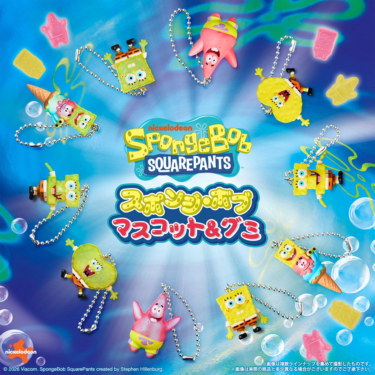 スポンジ・ボブ マスコット&グミ お気に入り お気に入り登録とは? 価格 360円(税込:396円) 発売日 2026年10月 発売 売場 全国量販店の菓子売場等 対象年齢 15才以上 購入はこちら 商品アンケート "スポンジ・ボブ"がマスコット&グミになって食玩売り場に登場! マスコットは全10種、グミはミックスフルーツ味でスポンジ・ボブとパトリックの形を表現★ ●ボールチェーン付きマスコット1個(全10種) 1.スポンジ・ボブ1 2.スポンジ・ボブ2 3.スポンジ・ボブ3 4.パトリック 5.アイス 6.スポンジ・ボブ1(クリア) 7.スポンジ・ボブ2(クリア) 8.スポンジ・ボブ3(クリア) 9.パトリック(クリア) 10.アイス(クリア) ●グミキャンディ27g (C)2026 Viacom. SpongeBob SquarePants created by Stephen Hillenburg. ※画像には複数ラインナップを組み合わせて撮影したものも含まれます。 ※価格はメーカー希望小売価格表示です。 ※店頭での商品のお取り扱い開始日は、店舗によって異なる場合がございます。 ※画像は実際の商品とは多少異なる場合がございます。 ※掲載情報はページ公開時点のものです。予告なく変更になる場合がございます。
