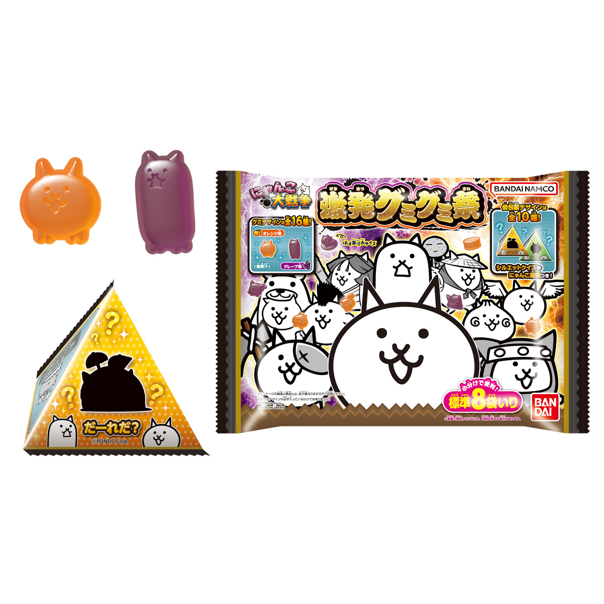 にゃんこ大戦争 激発グミグミ祭 お気に入り お気に入り登録とは? 価格 298円(税込:322円) ※この商品は軽減税率8%対象商品です。 発売日 2026年3月9日 発売 売場 全国量販店の菓子売場等 商品アンケート 大人気アプリゲーム『にゃんこ大戦争』のキャラクターたちが大袋グミになって登場!グミはグレープ味とオレンジ味の2味!さらにテトラ型の個包装も楽しい遊び付き! ●グミキャンディ72g (C)PONOS Corp. ※画像には複数ラインナップを組み合わせて撮影したものも含まれます。 ※価格はメーカー希望小売価格表示です。 ※店頭での商品のお取り扱い開始日は、店舗によって異なる場合がございます。 ※画像は実際の商品とは多少異なる場合がございます。 ※掲載情報はページ公開時点のものです。予告なく変更になる場合がございます。