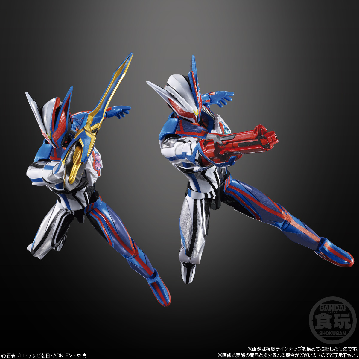 装動 仮面ライダーゼッツ AGT3 Feat.装動 仮面ライダーガヴ お気に入り お気に入り登録とは? 価格 590円(税込:649円) 発売日 2026年2月 発売 売場 全国量販店の菓子売場等 対象年齢 3才以上 購入はこちら 商品アンケート 【装】着して【動】かす【装動】シリーズより、『仮面ライダーゼッツ』第3弾が登場! 1.2.には、プラズマカプセムで変身した姿「仮面ライダーゼッツ イナズマプラズマ」が収録!3.と組み合わせることで「仮面ライダーゼッツ プラズマブースター」も再現可能です! 4.には「ゼッツ パラダイムグラビティ&イナズマブラスターセット」を収録!過去弾と組み合わせることで「仮面ライダーゼッツ パラダイムグラビティ」を再現可能!また「イナズマブラスター」は通常モードに加えて「グレートソードモード」の2種付属! 5.6.にはノクスの新たな姿「仮面ライダーノクス」を収録!!「ウルフシャドウ」「ガンシャドウ」再現用の腕パーツ、シールも付属!フォームチェンジを楽しもう! そして『仮面ライダーガヴ お菓子の家の侵略者』より「仮面ライダーガヴ へクセンハイム」「仮面ライダーカリエス C3」が収録決定!劇中での手に汗握るバトルを、装動で再現してみてください! 全10種の圧倒的ラインナップとコレクション性で第3弾も展開!是非お菓子売り場でGETしてください! ●プラスチック完成品一式(全10種) 1.ゼッツ イナズマプラズマA 2.ゼッツ イナズマプラズマB 3.ゼッツ プラズマブースター 4.ゼッツ パラダイムグラビティ&イナズマブラスターセット 5.ノクスA 6.ノクスB 7.ガヴ へクセンハイムA 8.ガヴ へクセンハイムB 9.カリエス C3A 10.カリエス C3B ●ガム(ソーダ味) (C)石森プロ・テレビ朝日・ADK EM・東映 ※画像には複数ラインナップを組み合わせて撮影したものも含まれます。 ※価格はメーカー希望小売価格表示です。 ※店頭での商品のお取り扱い開始日は、店舗によって異なる場合がございます。 ※画像は実際の商品とは多少異なる場合がございます。 ※掲載情報はページ公開時点のものです。予告なく変更になる場合がございます。