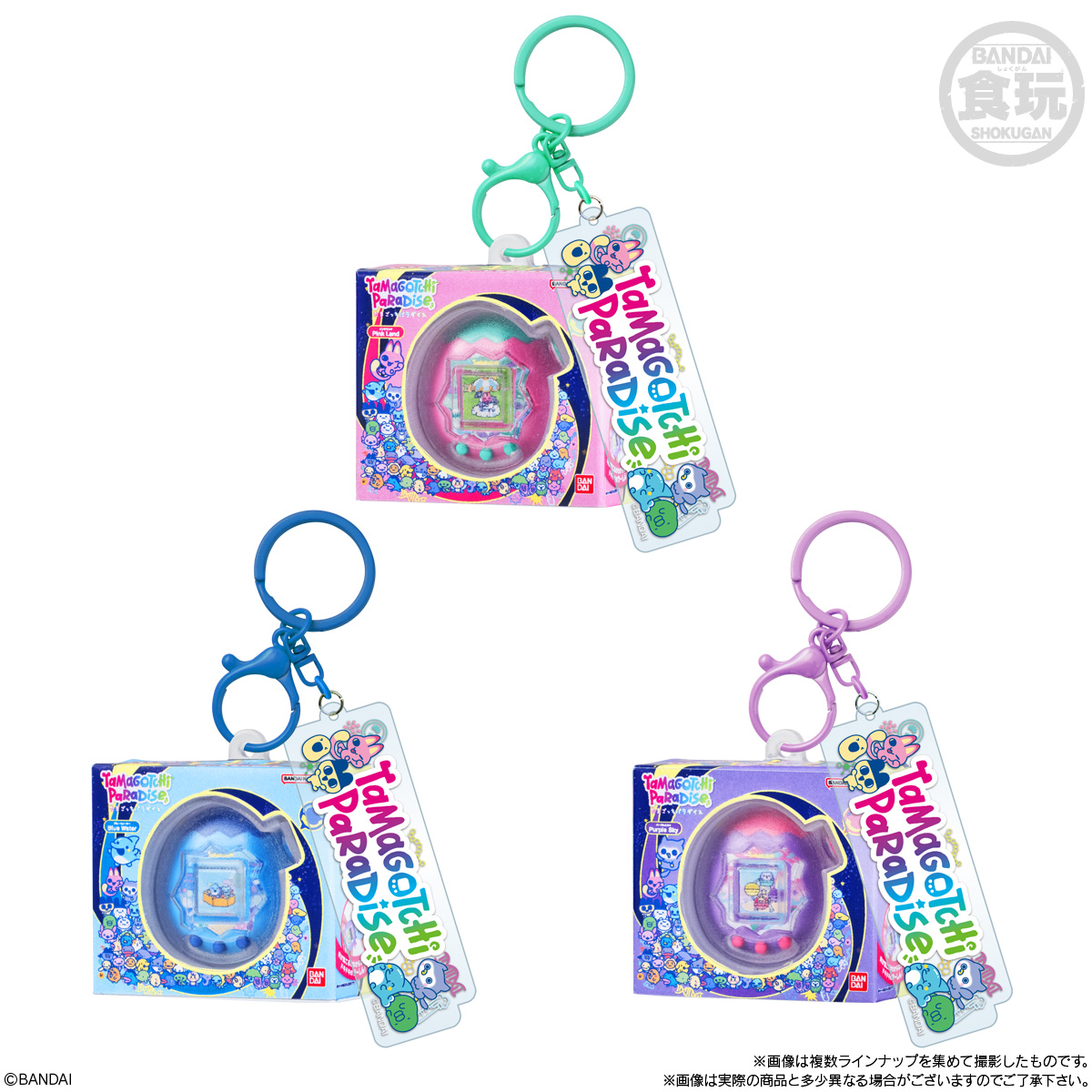 たまごっち カスタムキーリング2 お気に入り お気に入り登録とは? 価格 380円(税込:418円) 発売日 2026年8月 発売 売場 全国量販店の菓子売場等 対象年齢 15才以上 購入はこちら 商品アンケート 「たまごっちカスタムキーリング」の第2弾が登場! 歴代シリーズのデザインをミニチュア化した、コレクション心くすぐるアイテムです♪ キーリング付きだから、かばんやポーチにつけて持ち歩いたり、飾ったりしてもOK! 推し活やじゃらづけにもぴったりで、あなた好みにカスタムして楽しめます! ラインナップは全9種(うち1種シークレット)! お菓子売り場で、あなたのお気に入りをゲットしよう! ●キーリングつきマスコット(全9種/うちシークレット1種) 1.新種発見!!たまごっち 白(柄) 2.ケーたま めろんソーダ 3.エンたま フリルぴんく 4.てんしっち パールブルー 5.Tamagotchi iD ピンク 6.Tamagotchi Paradise Pink Land 7.Tamagotchi Paradise Blue Water 8.Tamagotchi Paradise Purple Sky 9.シークレット ●ガム(ソーダ味)1個 (C)BANDAI ※画像には複数ラインナップを組み合わせて撮影したものも含まれます。 ※価格はメーカー希望小売価格表示です。 ※店頭での商品のお取り扱い開始日は、店舗によって異なる場合がございます。 ※画像は実際の商品とは多少異なる場合がございます。 ※掲載情報はページ公開時点のものです。予告なく変更になる場合がございます。