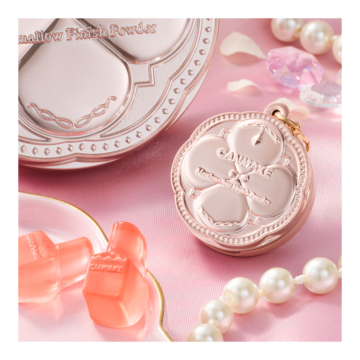 CANMAKE TOKYO ミニチュアチャーム&グミ お気に入り お気に入り登録とは? 価格 350円(税込:385円) 発売日 2026年5月 発売 売場 全国量販店の菓子売場等 対象年齢 15才以上 購入はこちら 商品アンケート CANMAKE TOKYOのミニチュアチャームがカニカン付きマスコットになってお菓子売り場に新登場! サイズ感が可愛い、高級感のあるミニチュアチャームです♪ カニカン付きだから、化粧ポーチなどにつけるのにもぴったり♥ ピンクレモネード味のグミはネイルボトル型のデザイン! おまけもお菓子も楽しめる商品です♡※本商品は実際の化粧品ではありません。 ●カニカン付きミニチュアチャーム1個(全10種) 1.ファンデーションカラーズ01 2.ファンデーションカラーズ06 3.ファンデーションカラーズ09 4.ムーングロウハイライター01 5.ムーングロウハイライター02 6.マシュマロフィニッシュパウダーMO 7.グロウフルールチークス02 8.グロウフルールチークス17 9.ラメマニア02 10.ラメマニア03 ●グミキャンディ ※画像には複数ラインナップを組み合わせて撮影したものも含まれます。 ※価格はメーカー希望小売価格表示です。 ※店頭での商品のお取り扱い開始日は、店舗によって異なる場合がございます。 ※画像は実際の商品とは多少異なる場合がございます。 ※掲載情報はページ公開時点のものです。予告なく変更になる場合がございます。