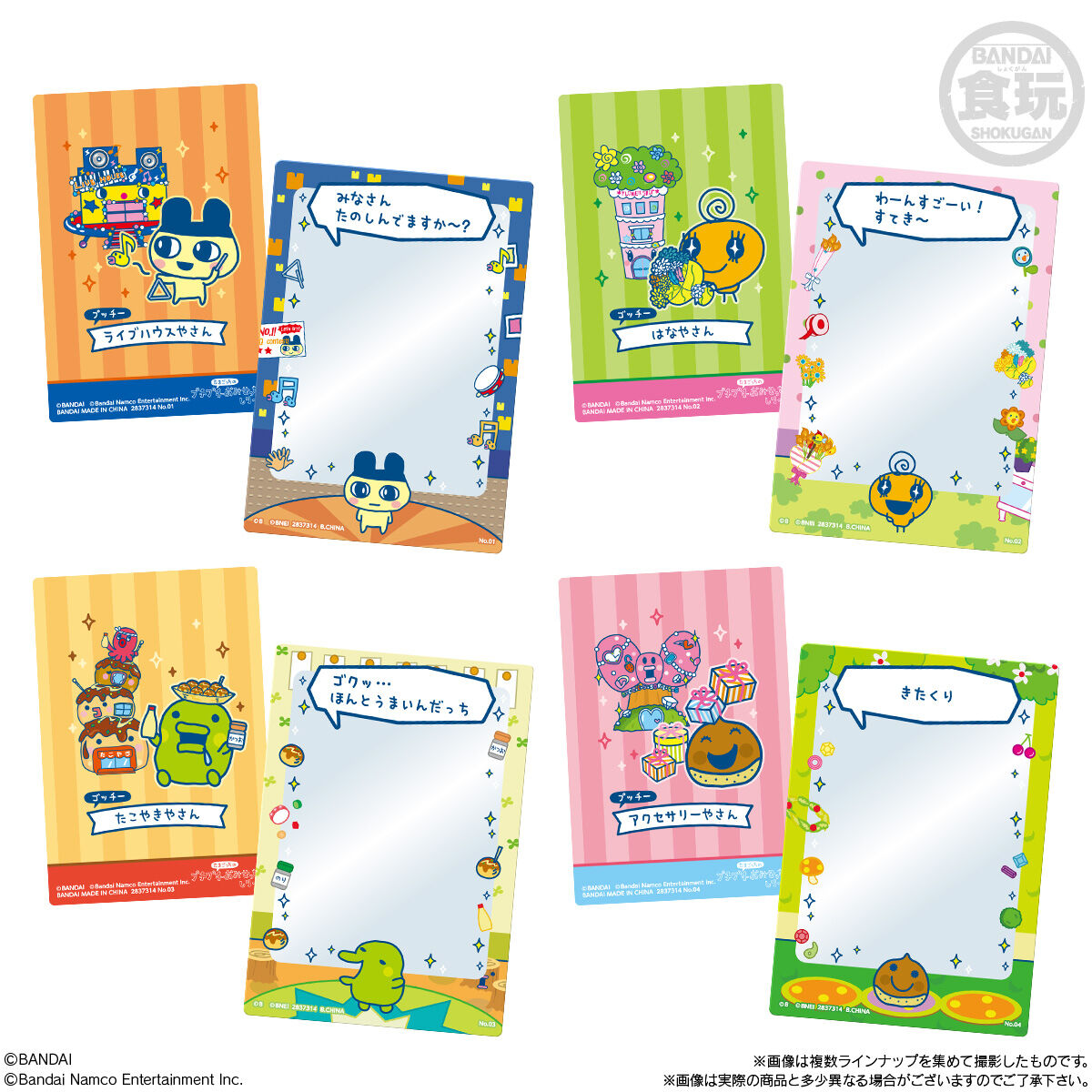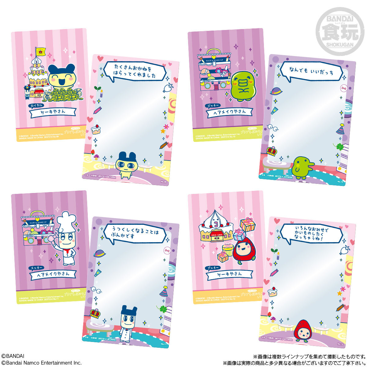 たまごっちのプチプチおみせっちしり~ず カード&フレーム チョコクランチ お気に入り お気に入り登録とは? 価格 350円(税込:385円) 発売日 2026年4月13日 発売 売場 全国量販店の菓子売場等 対象年齢 15才以上 購入はこちら 商品アンケート 「たまごっちのプチプチおみせっちしり~ず 」に登場するたまごっちたちとセリフを使用した紙カードつきのカードフレームが登場!付属の紙カードでゲームのなかのたまごっちたちの様子を再現!さらに、お好きなカードに入れ替えることもできるので推しにセリフをしゃべってもらったり、様々な楽しみ方ができます♪ お菓子は個包装のチョコクランチが1個ついてきます! ●紙カードつきカードフレーム1個(全22種)●チョコクランチ(準チョコレート)1個 (C)BANDAI(C)Bandai Namco Entertainment Inc. ※画像には複数ラインナップを組み合わせて撮影したものも含まれます。 ※価格はメーカー希望小売価格表示です。 ※店頭での商品のお取り扱い開始日は、店舗によって異なる場合がございます。 ※画像は実際の商品とは多少異なる場合がございます。 ※掲載情報はページ公開時点のものです。予告なく変更になる場合がございます。