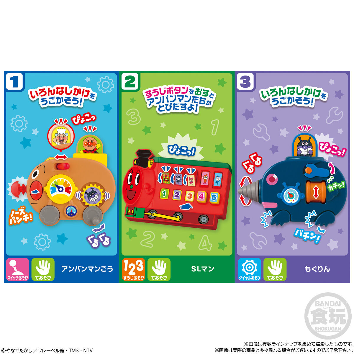 すくすくアンパンマン お気に入り お気に入り登録とは? 価格 390円(税込:429円) 発売日 2026年4月20日 発売 売場 全国量販店の菓子売場等 対象年齢 2才以上 商品アンケート 「押す」「回す」「数える」など、お子さまの知育につながる手あそびがいっぱい!指先を使ったり、どこが動くんだろう?と考えながら、アンパンマンたちと遊べるよ♪ラインナップは「アンパンマンごう」「SLマン」「もぐりん」の全3種です。 ●プラスチック完成品1個(全3種)1.アンパンマンごう2.SLマン3.もぐりん●ラムネ菓子1個 (C)やなせたかし/フレーベル館・TMS・NTV ※画像には複数ラインナップを組み合わせて撮影したものも含まれます。 ※価格はメーカー希望小売価格表示です。 ※店頭での商品のお取り扱い開始日は、店舗によって異なる場合がございます。 ※画像は実際の商品とは多少異なる場合がございます。 ※掲載情報はページ公開時点のものです。予告なく変更になる場合がございます。