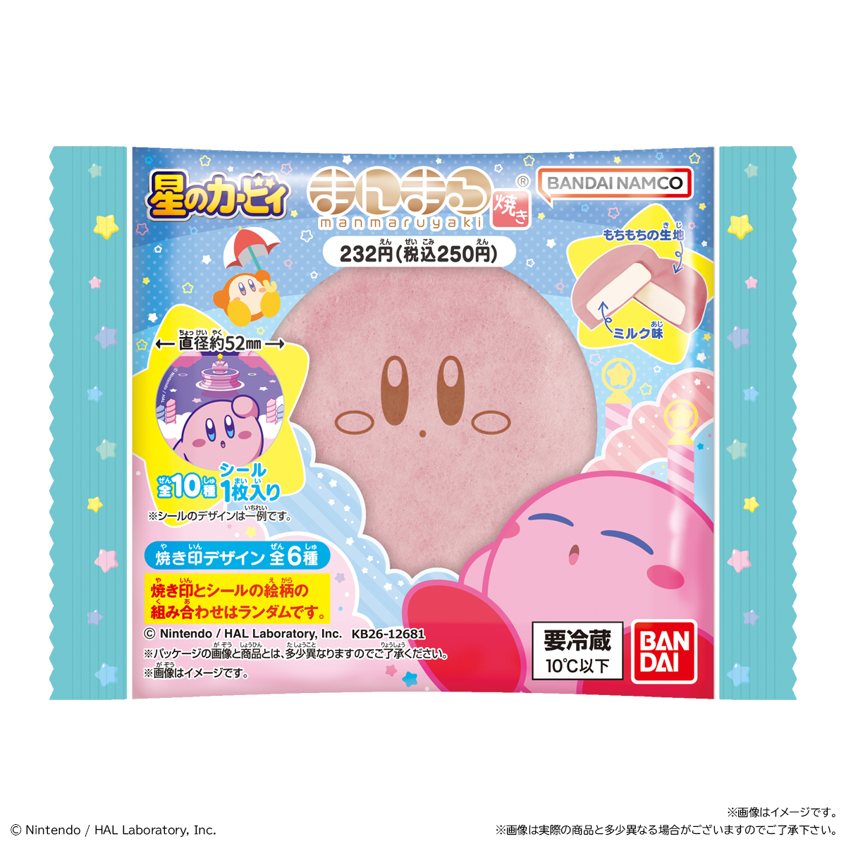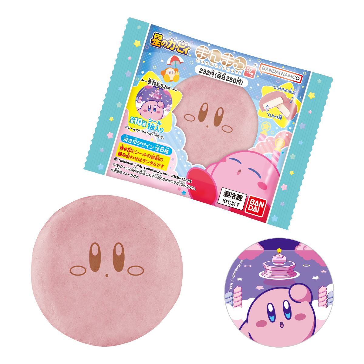 星のカービィ まんまる焼き 2026 お気に入り お気に入り登録とは? 価格 232円(税込:250円) ※この商品は軽減税率8%対象商品です。 発売日 2026年4月21日 発売 売場 全国のファミリーマート(一部店舗を除く)のチルドスイーツコーナー 対象年齢 3才以上 商品アンケート 星のカービィのまんまる焼き第3弾が登場!まんまる生地の今川焼きに焼き印(全6種)が押されており、中にはミルク味のクリームが入っているスイーツです。付属のシールは全10種の中からランダムで1枚が入っています。ファミリーマート限定発売です。 ●和生菓子1個●シール1枚入り(全10種) (C) Nintendo / HAL Laboratory, Inc. ※画像には複数ラインナップを組み合わせて撮影したものも含まれます。 ※価格はメーカー希望小売価格表示です。 ※店頭での商品のお取り扱い開始日は、店舗によって異なる場合がございます。 ※画像は実際の商品とは多少異なる場合がございます。 ※掲載情報はページ公開時点のものです。予告なく変更になる場合がございます。 ※開封後は消費期限にかかわらず、お早めに召し上がってください。 ※生地の黒い斑点は焦げです。品質に問題はございません。 ※クリームが生地の表面についていることがありますが、品質に問題はございません。 ※召し上がり方 冷蔵庫で冷やして、そのまま召し上がってください。