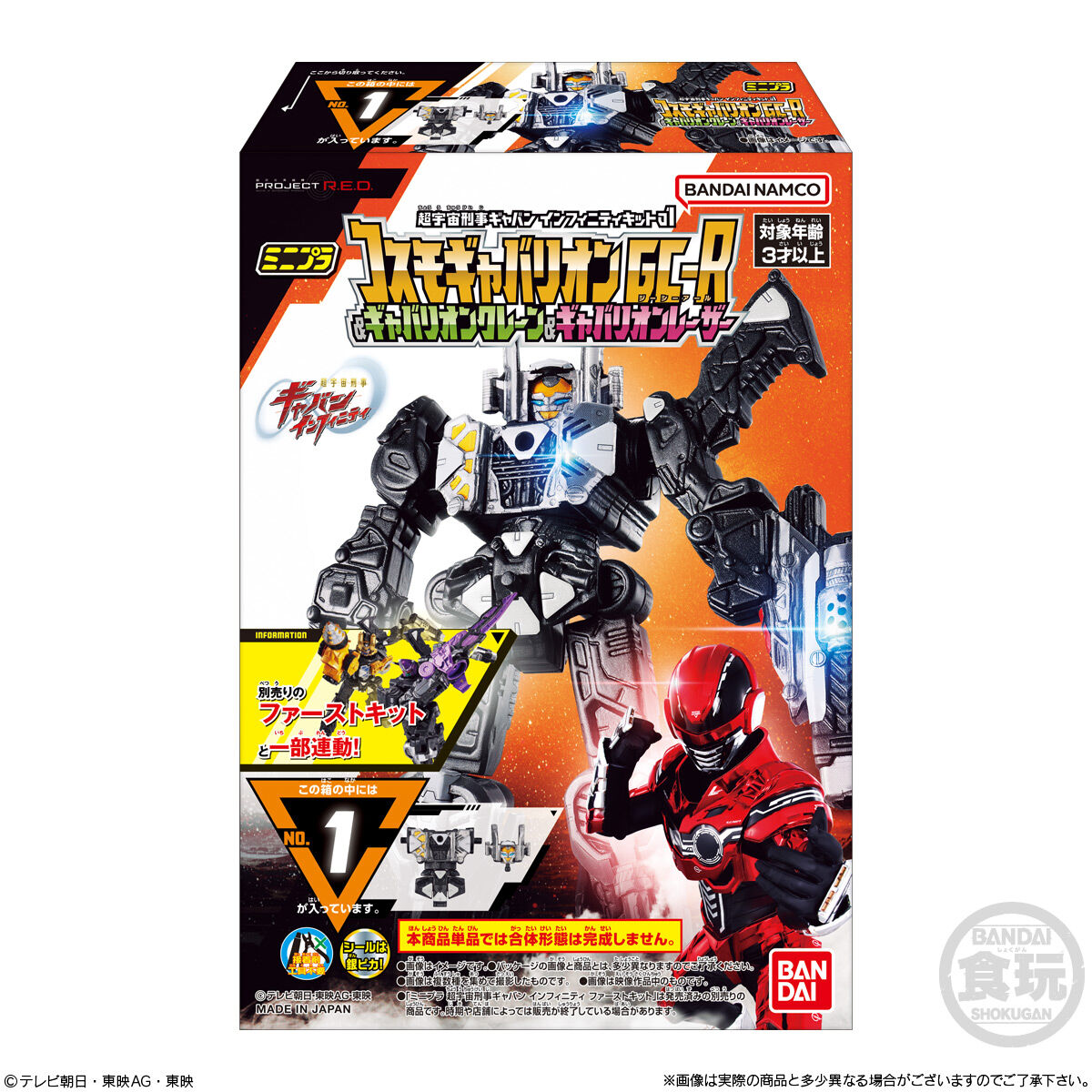 ミニプラ 超宇宙刑事ギャバン インフィニティキット01 コスモギャバリオン GC-R & ギャバリオンクレーン & ギャバリオンレーザー お気に入り お気に入り登録とは? 価格 360円(税込:396円) 発売日 2026年3月23日 発売 売場 全国量販店の菓子売場等 対象年齢 3才以上 商品アンケート 『超宇宙刑事ギャバン インフィニティ』より、工具不要で簡単な組み立てキット「ミニプラ」がさらに組み立てやすくなって登場!1.~4.でコスモギャバリオンGC-Rが完成。5.でギャバリオンクレーン、6.でギャバリオンレーザーがそれぞれ1箱で完成します。「コスモギャバリオンGC-R」は3モードに変形が可能!「ギャバリオントリガー」、「コスモギャバリオン」への変形遊びを楽しむこともできます。「ギャバリオンクレーン」、「ギャバリオンレーザー」は変形遊びが楽しめるだけでなく、コスモギャバリオン GC-Rと変形合体!「コスモギャバリオン タイプクレーン」「コスモギャバリオン タイプレーザー」、さらには「コスモギャバリオン &C」「コスモギャバリオン G.I.」へフォームチェンジさせることが可能です。さらにコスモギャバリオン GC-Rは2月発売のファーストキットに収録されている、ギャバリオントリガー、ギャバリオンドリルと変形合体することができます!プロポーション、可動、組み立てやすさにもこだわったミニプラシリーズをお楽しみください。 ●組み立て式プラキット1個(全6種)1.コスモギャバリオン GC-R A2.コスモギャバリオン GC-R B3.コスモギャバリオン GC-R C4.コスモギャバリオン GC-R D5.ギャバリオンクレーン6.ギャバリオンレーザー●ラムネ菓子1個 (C)テレビ朝日・東映AG・東映 ※画像には複数ラインナップを組み合わせて撮影したものも含まれます。 ※価格はメーカー希望小売価格表示です。 ※店頭での商品のお取り扱い開始日は、店舗によって異なる場合がございます。 ※画像は実際の商品とは多少異なる場合がございます。 ※掲載情報はページ公開時点のものです。予告なく変更になる場合がございます。