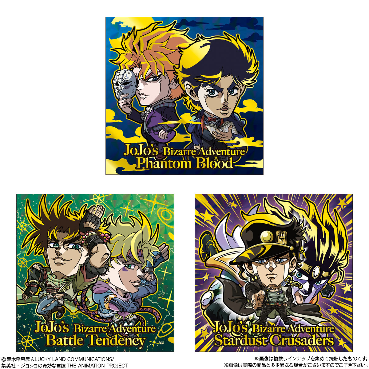 にふぉるめーしょん ジョジョの奇妙な冒険 シールウエハース ~The Animation Special Ⅰ~ お気に入り お気に入り登録とは? 価格 135円(税込:149円) 発売日 2026年8月 発売 売場 全国量販店の菓子売場等 対象年齢 6才以上 購入はこちら 商品アンケート シールコレクション『にふぉるめーしょん』ジョジョの第9弾が登場!第1~2シリーズ、最新作「スティール・ボール・ラン」のキャラクターを収録!!今回も箔押し仕様のJJR(ジョジョレア)収録!! さらに『にふぉるめーしょん』5周年を記念した「5thレア」を全5種収録!■コレクションシールのブランド名「にふぉるめーしょん」とはにとうしん(2頭身)のディフォルメイラストで作品の魅力を表現するシールコレクション!!●シール1枚(全32種/うちシークレット1種)●ココアクリーム味ウエハース1枚 (C)荒木飛呂彦&LUCKY LAND COMMUNICATIONS/集英社・ジョジョの奇妙な冒険THE ANIMATION PROJECT ※画像には複数ラインナップを組み合わせて撮影したものも含まれます。 ※価格はメーカー希望小売価格表示です。 ※店頭での商品のお取り扱い開始日は、店舗によって異なる場合がございます。 ※画像は実際の商品とは多少異なる場合がございます。 ※掲載情報はページ公開時点のものです。予告なく変更になる場合がございます。
