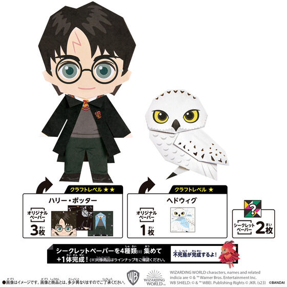 本商品と別売りの『クラフトフレンズ パピるんず ニュート・スキャマンダー&ニフラー』に付属する「シークレットペーパー」を集めて組み合わせると、不死鳥が完成!