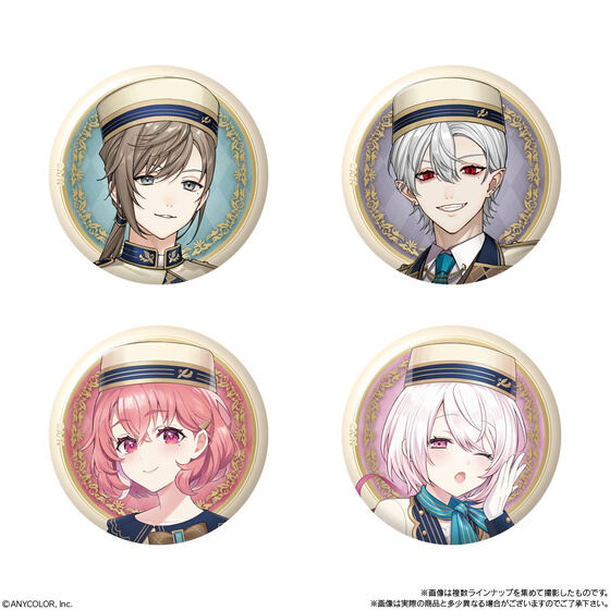 缶バッジは食玩オリジナルのコンシェルジュ衣装ビジュアルを使用した全15種のラインナップです。