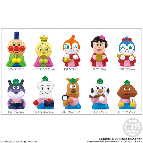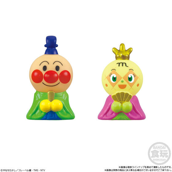 お内裏さまのアンパンマン、お雛さまのメロンパンナちゃん、三人官女のドキンちゃん、バタコさん、コキンちゃんなど思わずひな壇に並べたくなっちゃうなかまたちが全10種♪