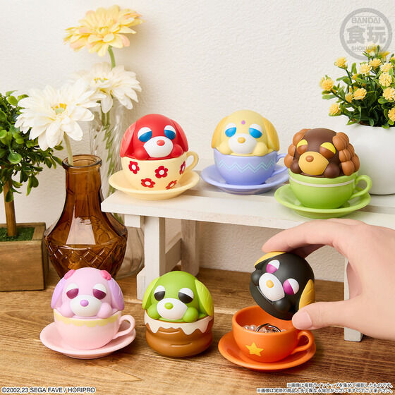 お茶犬たちがカップからちょこんと飛び出したデザインで、そのまま飾ってもかわいい!