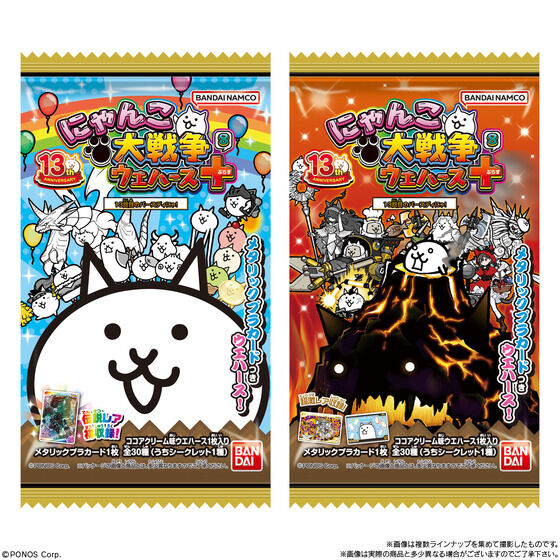 2025年11月にアプリ13周年を迎える「にゃんこ大戦争」の、プラカードつきウエハース第8弾です。