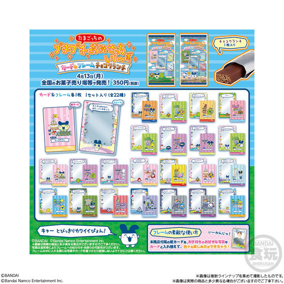 「たまごっちのプチプチおみせっちしり~ず 」に登場するたまごっちたちとセリフを使用した紙カードつきのカードフレームが登場!