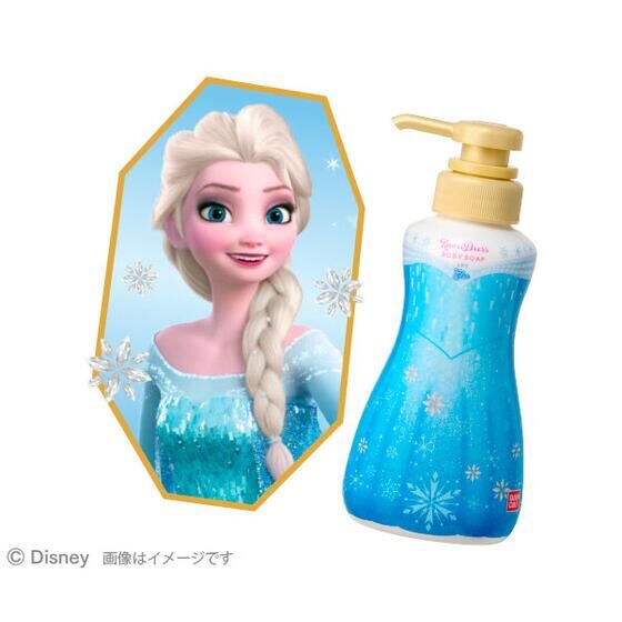 エルサのドレスをイメージしたボトルには、スノーパフュームのさわやかな香りのボディソープを詰め込み、贅沢で特別なバスタイムへと導きます。