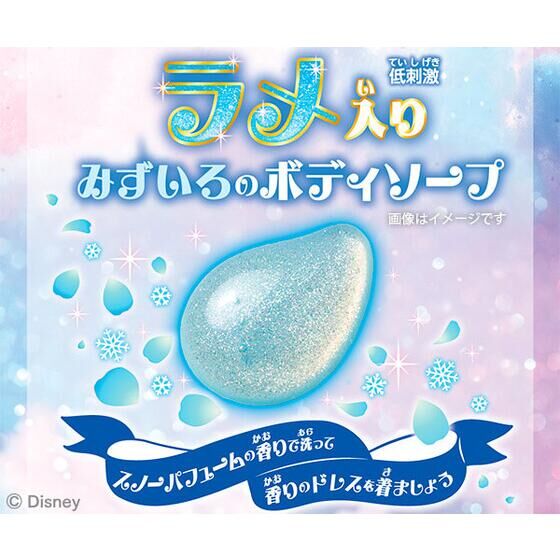 ・香り/色 : スノーパフュームの香り/ラメ入り水色のボディソープ(低刺激試験実施済み。※すべての方に皮膚刺激・アレルギーが発生しないということではありません。)