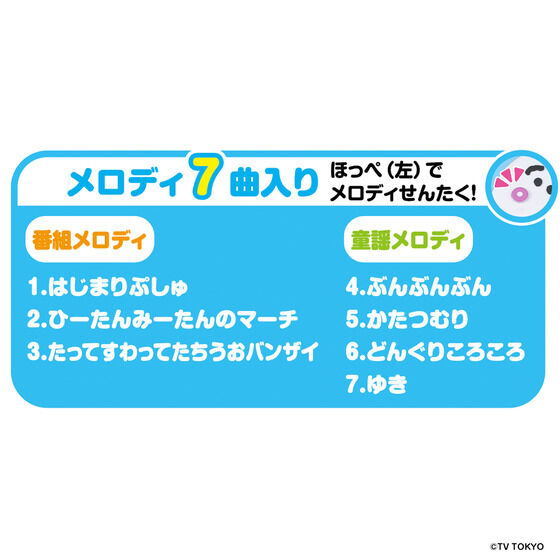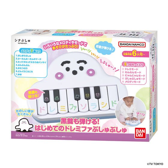 通常のピアノあそびはもちろん、モードを切替えることでぷしゅぷしゅや動物の声を楽しめたり、「はじまりぷしゅ」などの番組メロディや童謡メロディも流れて楽しく遊べます。
