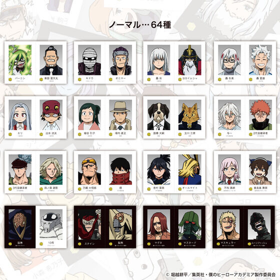 収録キャラクター約170名!! TVアニメ『僕のヒーローアカデミア FINAL SEASON』までの作中に登場した様々なキャラクター達が大集合する特別弾!緑谷や爆豪たちA組の仲間など、メインキャラクターは1セットに必ず1枚封入!さらにレアパラレルは豪華な金色箔仕様!1セット2枚入り。 ※『Wariふぉと』は1枚のカードが2枚のミニカードになるバンダイコレクションカードの新商品です。
