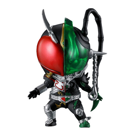 “仮面ライダーへと変身するキャラクターが怪人の姿へも変貌する。”