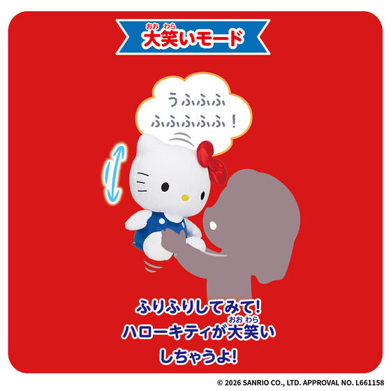 どんどんおしゃべりしてくれる「おしゃべりモード」、ユーザーの声や音に反応してお返事してくれる「おへんじモード」、振ると笑ってくれる「大笑いモード」、ポップコーン自販機で有名な『ハローキティ』を歌ってくれる「おうたモード」など、楽しい機能がいっぱい♪