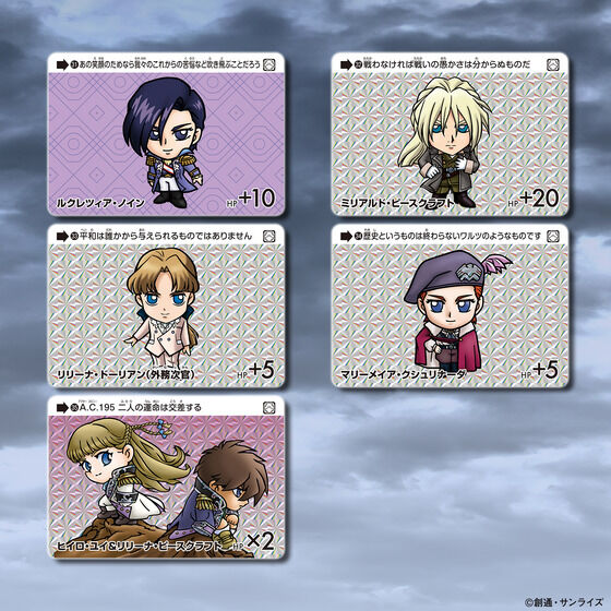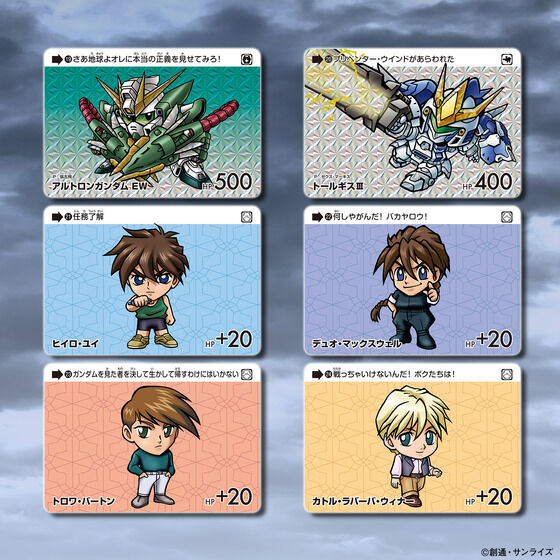 『新機動戦記ガンダムW Endless Waltz』も含む多数のモビルスーツやキャラクターが、ディフォルメされて全35種(うち1種シークレットを含む)のSDガンダムカードダスとして登場!イラストは全て新規描き下ろし!SDイラスト界の巨匠”横井画伯”によるイラストも収録です!