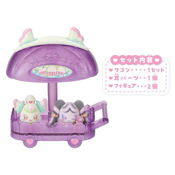 ぷちきゅあの可愛いフロッキーフィギュア2個とワゴン型ハウス1個がセットになった商品です。