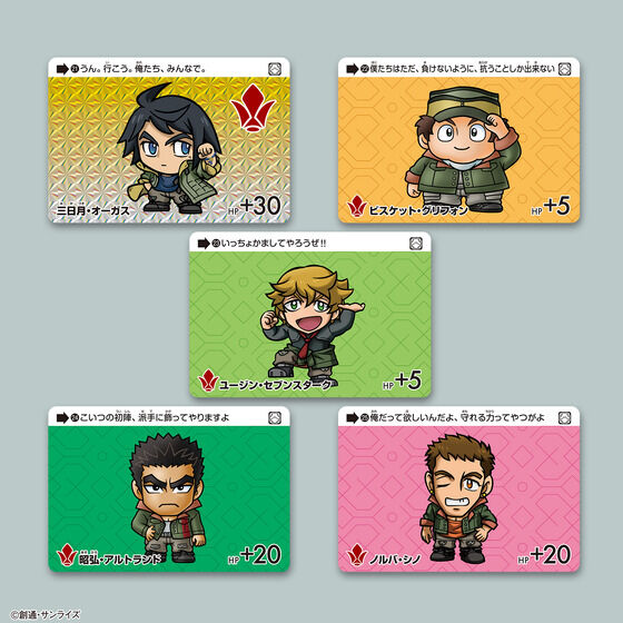 今年10周年を迎えた『機動戦士ガンダム 鉄血のオルフェンズ』のカードダスが登場!第1期、第2期の登場キャラクターやモビルスーツ達が、ディフォルメされて全35種のSDガンダムカードダスとして登場!イラストは全て新規描き下ろし!