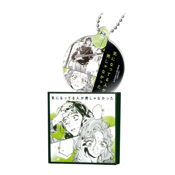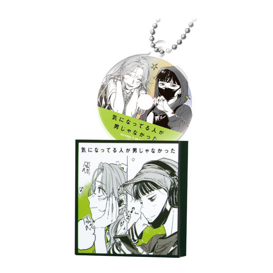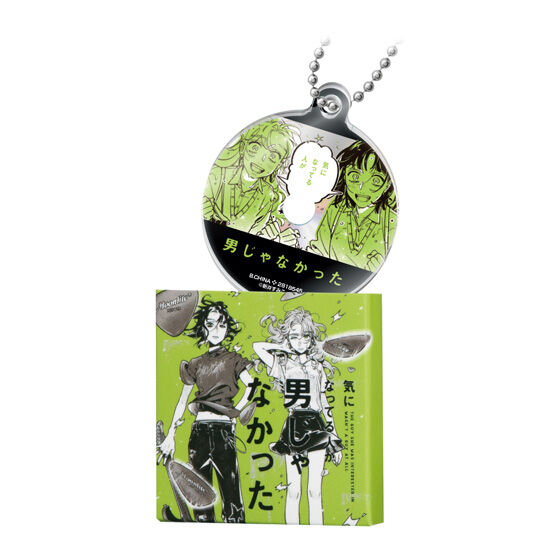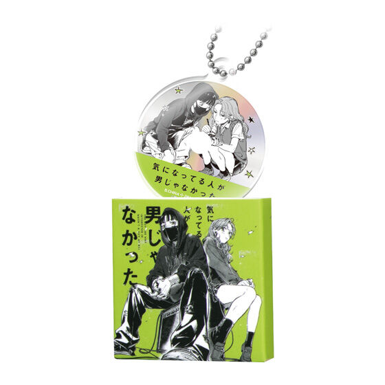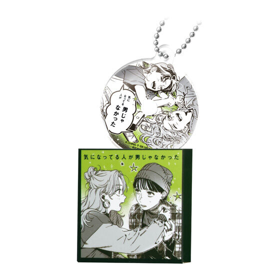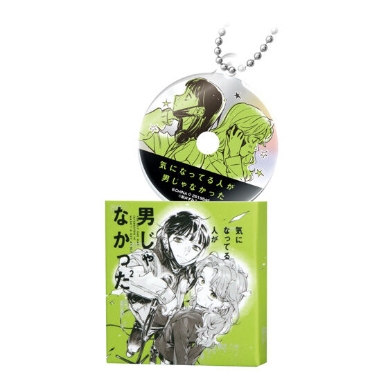 SNS発の大ヒット漫画『気になってる人が男じゃなかった』がガシャポンから登場!CDをイメージしたキラキラの銀シール付きアクリルチャームと紙製のパッケージがセットになっています。