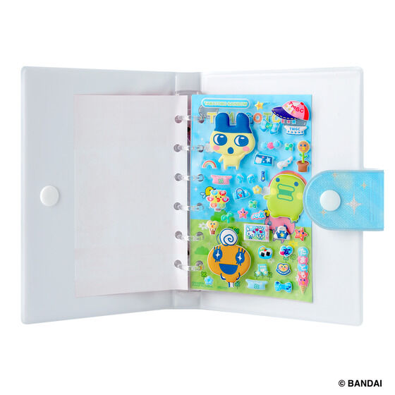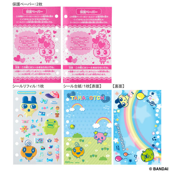 たまもりしーるや台紙をファイルして持ち運べるシール帳です。 水色を基調に、虹や風船をモチーフとした、仲良しなたまごっちがかわいいデザインがポイントです。テーマに合わせた台紙・シールも1枚ずつ付属しています。